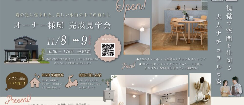 富山市下冨居でお客様邸の完成見学会を開催! 同時に分譲地内にあるモデルハウス2棟もご見学いただ...