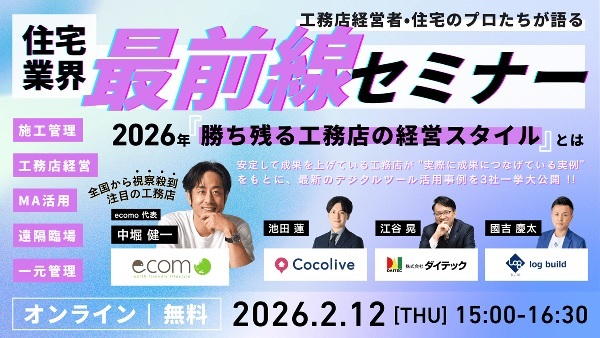 ※詳細・お申し込み:住宅業界最前線セミナー~2026年勝ち残る工務店の経営スタイルとは~ | ダイテック クラウド事業部