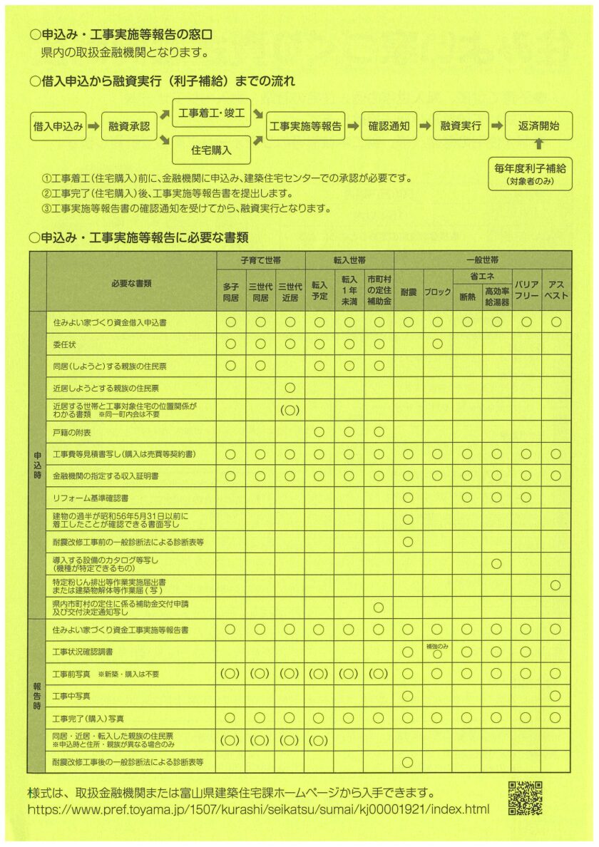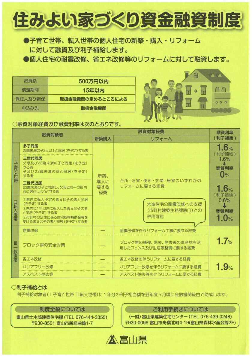 住みよい家づくり資金融資制度チラシ