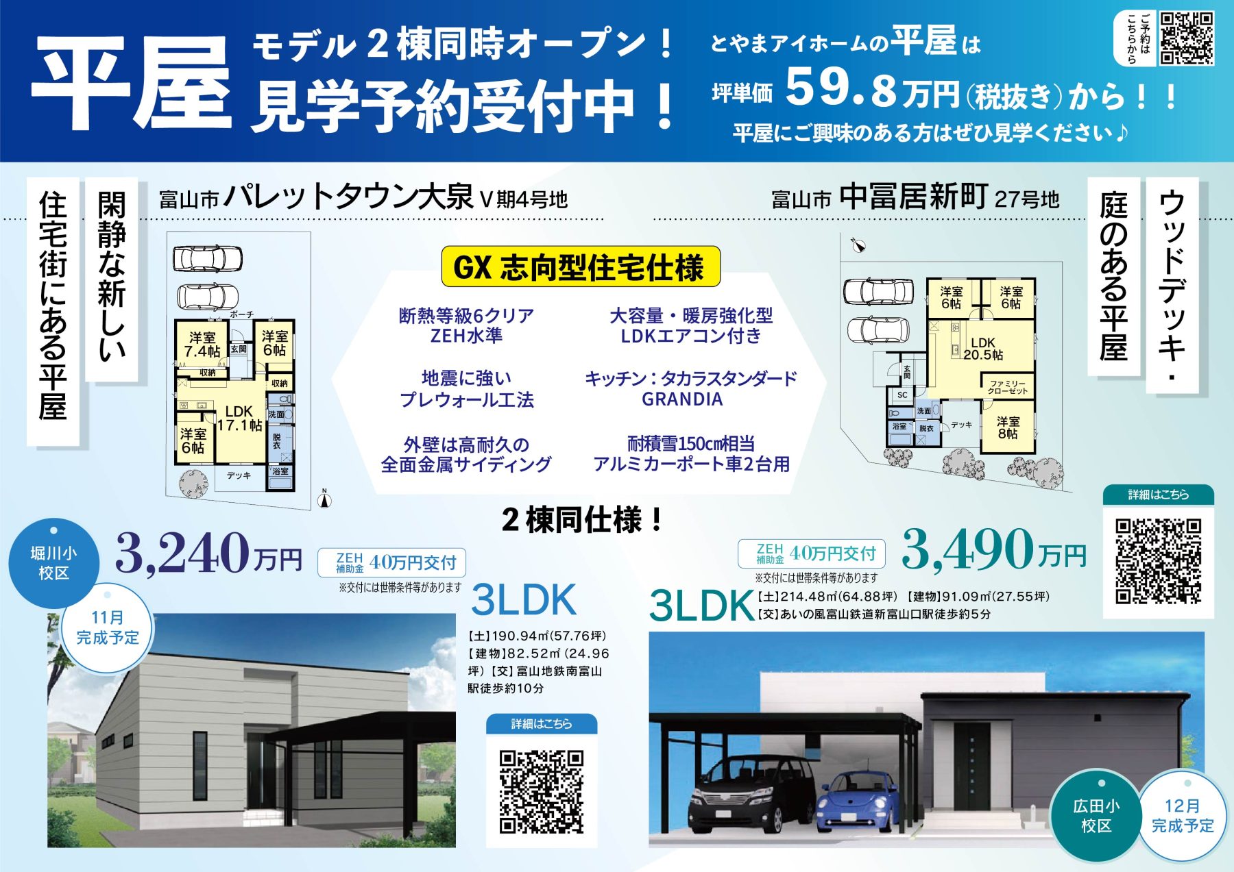 とやまアイホームの平屋は坪単価税抜き59.8万円から!
