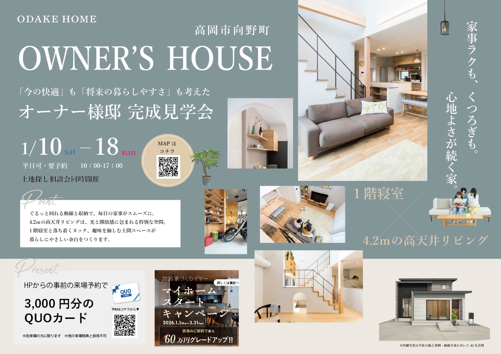 高岡市向野町お施主様邸見学会【予約制】 【イベント受付時間】10:00~17:00<予約制> ご来場のお申込は下記ページ予約フォームよりお願いします ●●●詳細および来場申込はオダケホームHPで●●●