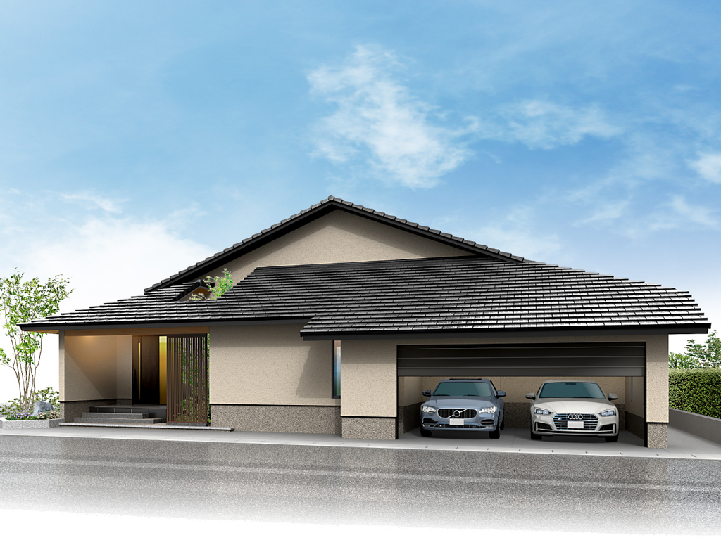 富山に最適なビルトインガレージも景観に溶け込んで美しい。