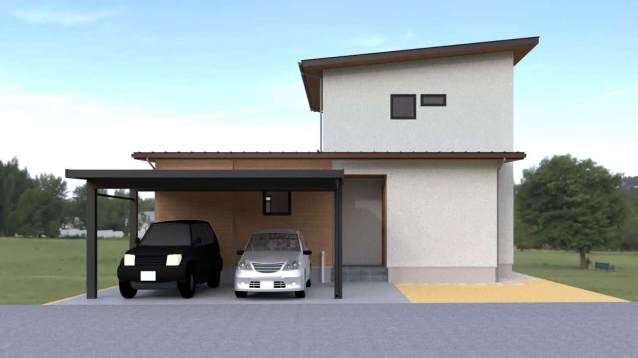 屋根のかかり方や高さに変化をつけることで、実際の坪数以上の存在感と、
