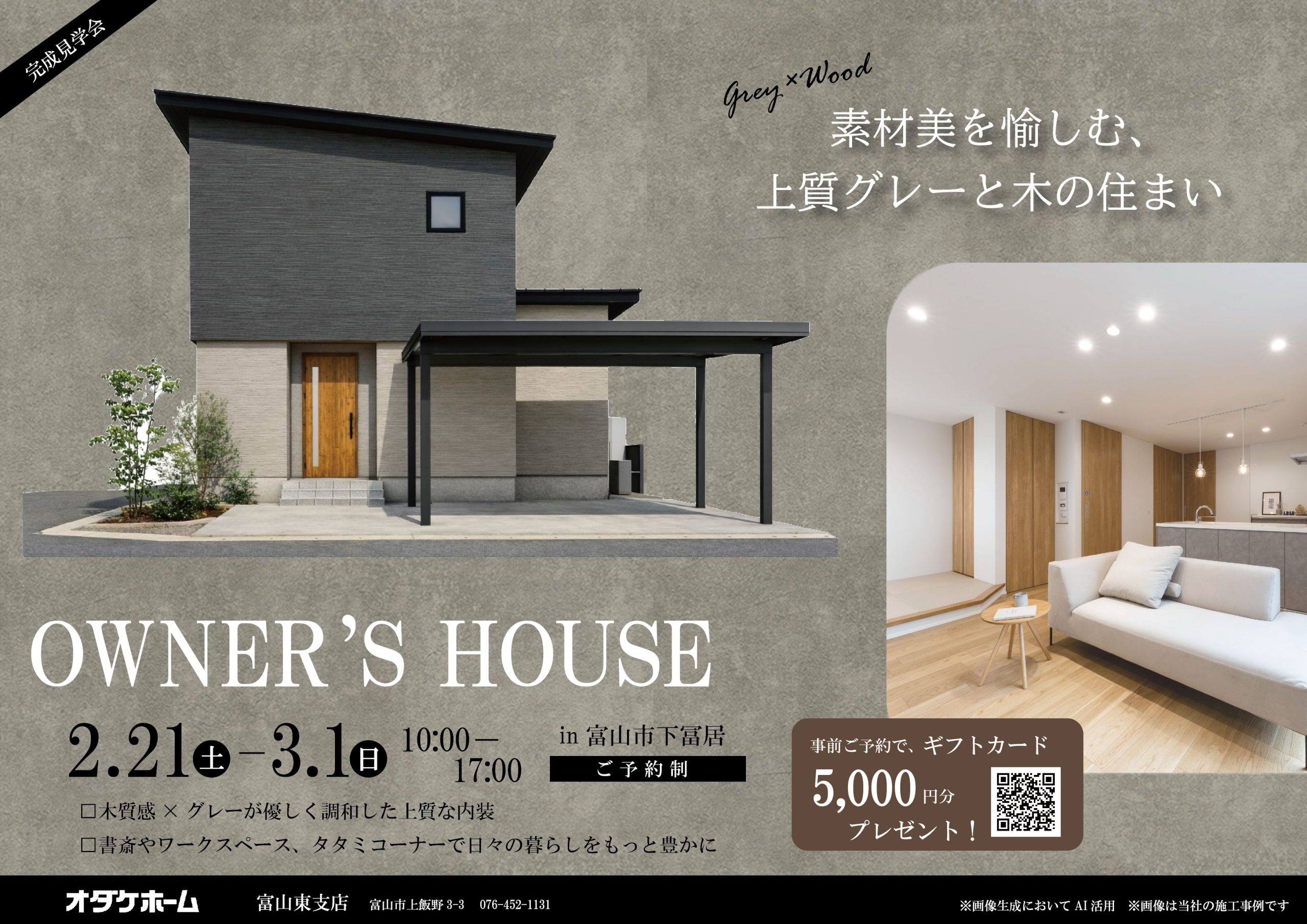 富山市下冨居でお客様邸見学会を開催 分譲地内にあるモデルハウスも同時にご見学いただけます ご予約は下記ページ予約フォームまで↓ ●●●詳細および来場申込はオダケホームHPで●●●