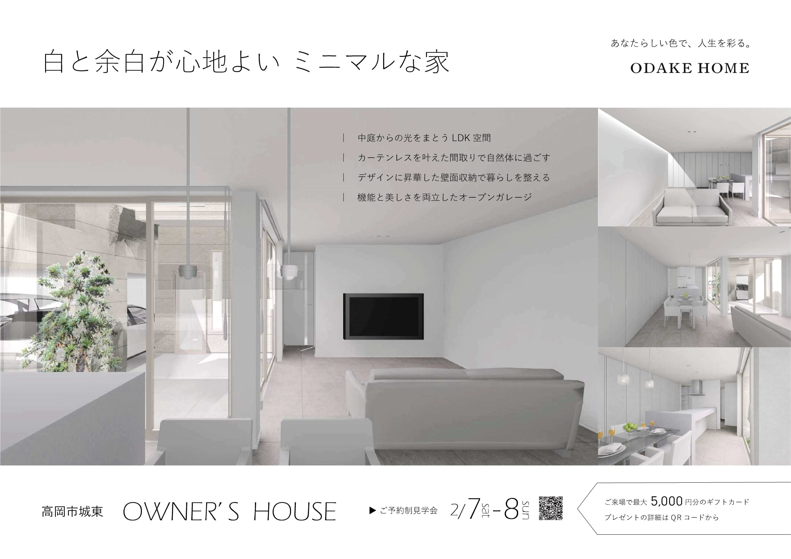 高岡市城東にてお客様邸の完成見学会を開催! <受付時間>10:00~17:00(ご予約制です) ご予約は下記ページ予約フォームよりお申し込みください↓ ●●●詳細および来場申込はオダケホームHPで●●●