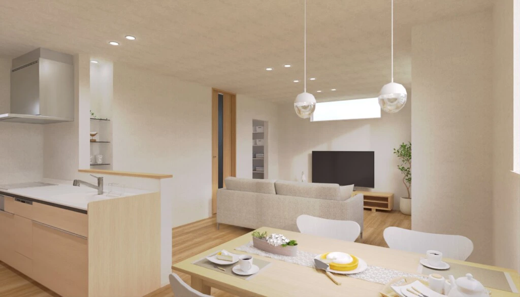 ナチュラルモダンな色合いのリビングは、まちなかとは思えない明るさを住まいにもたらします。