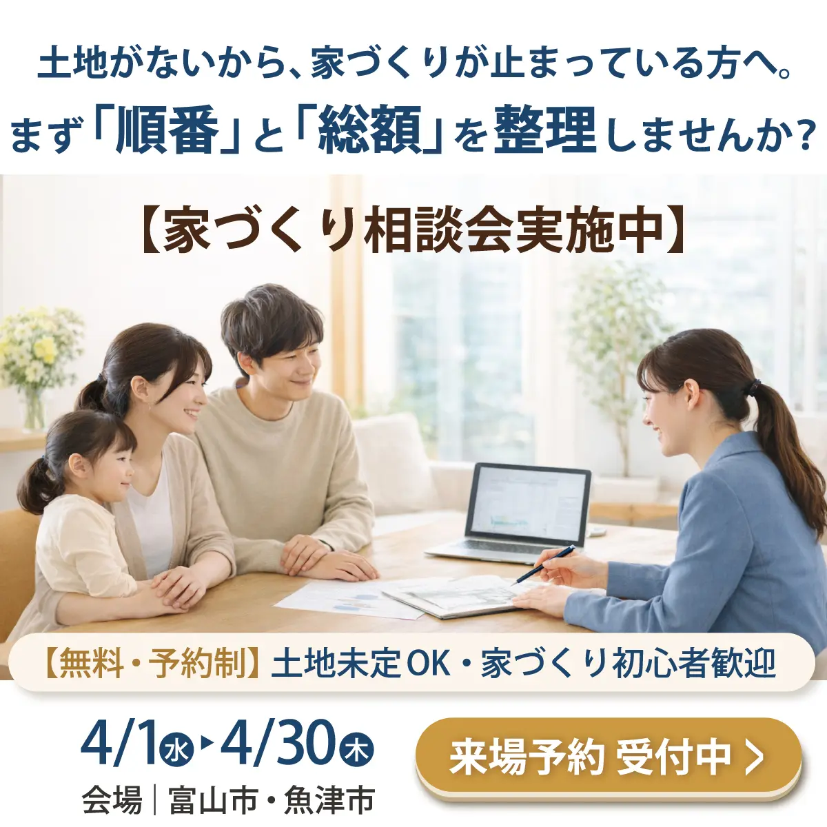 土地が決まっていない方、大歓迎。